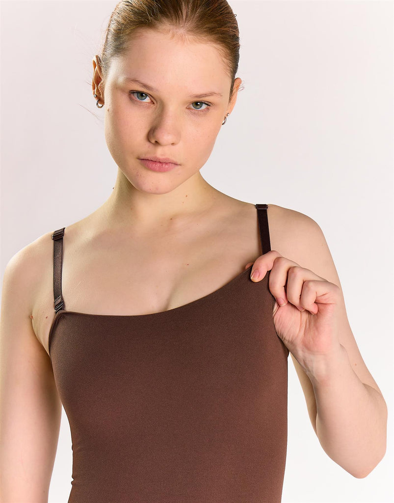 Square Neck Sleeveless Bodysuit - Brown